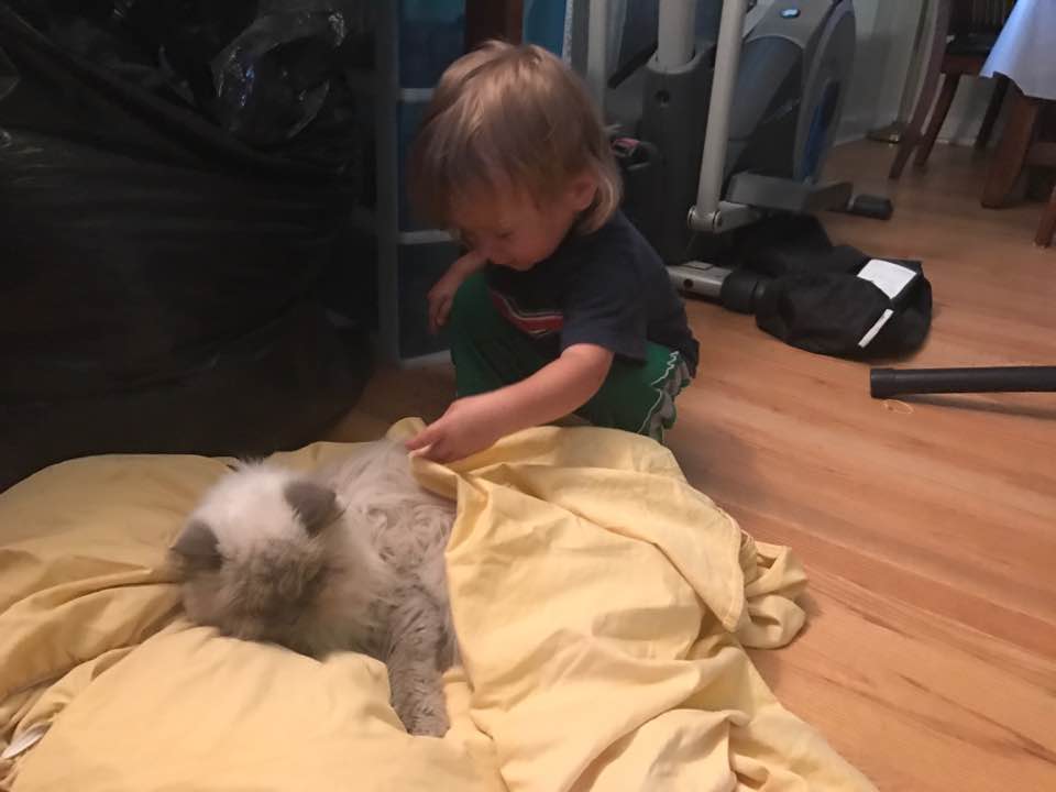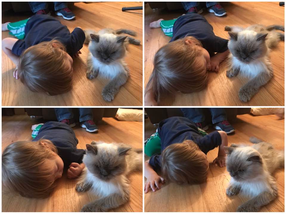 We did a lot of snuggling. Lorelei kissed him. Rowan gave him bits of everything he ate and told him “night night” and tucked him in his sheet.