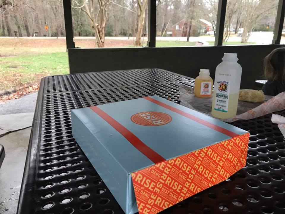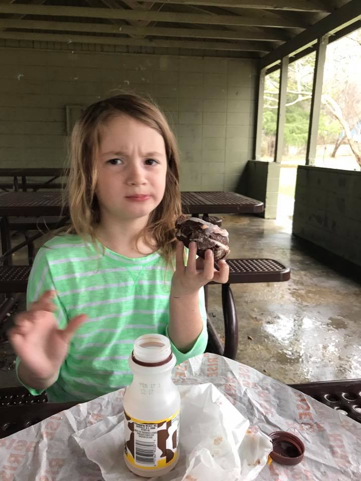 I jumped out of bed and declared that we were going out for donuts and biscuits and for anyone who wanted to go to be ready in ten minutes. After we grabbed our food we went to the park to eat breakfast.